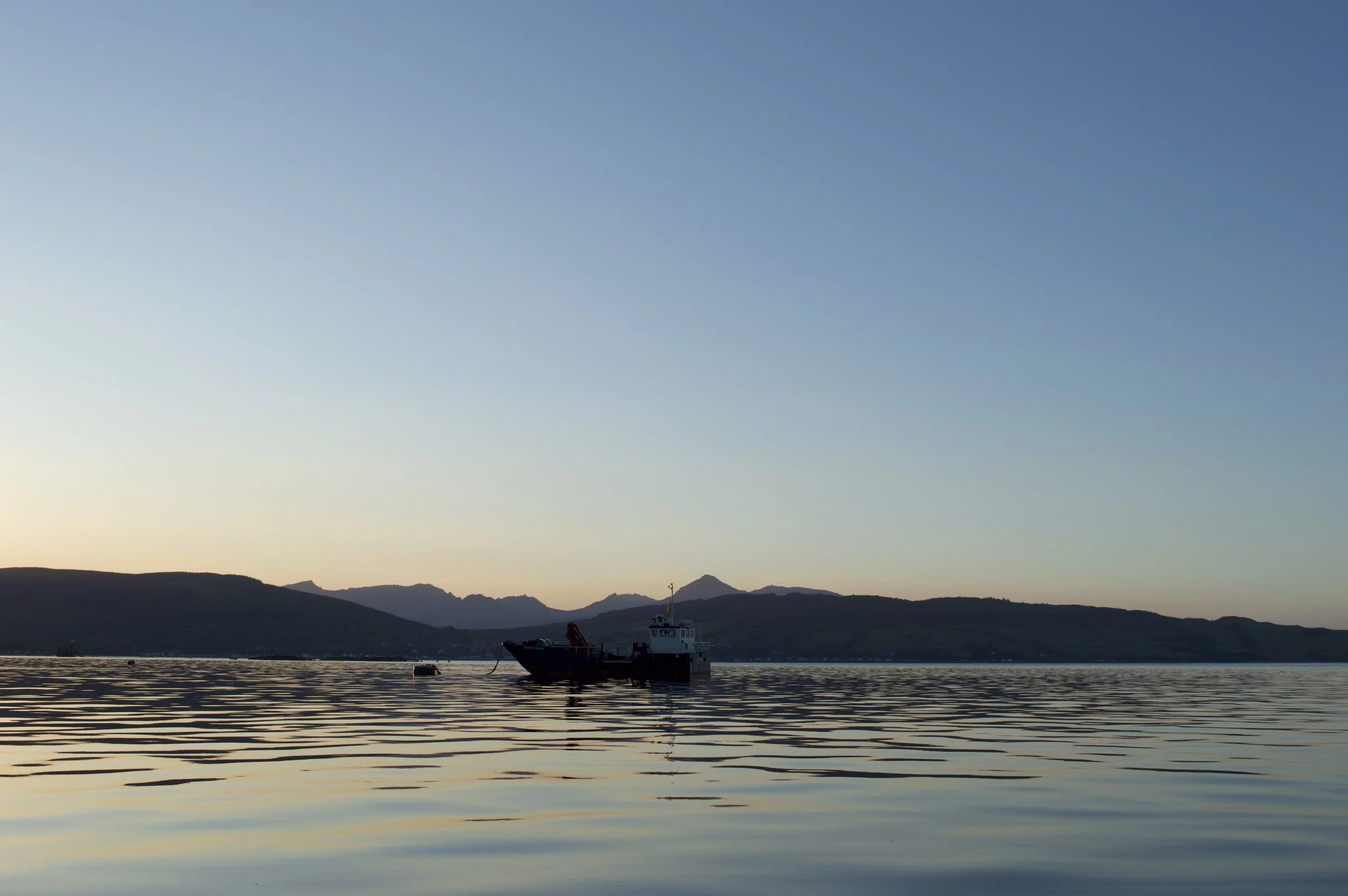 I walked down the hill to the same floating fishing pier at Kingscross, Holy Isle golden and water so calm that to breathe felt too loud.